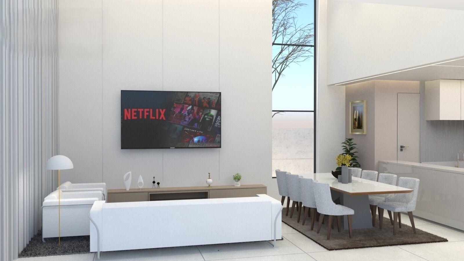 • Cozinha Americana, Despensa, Área de Serviços, Depósito e Jardim
