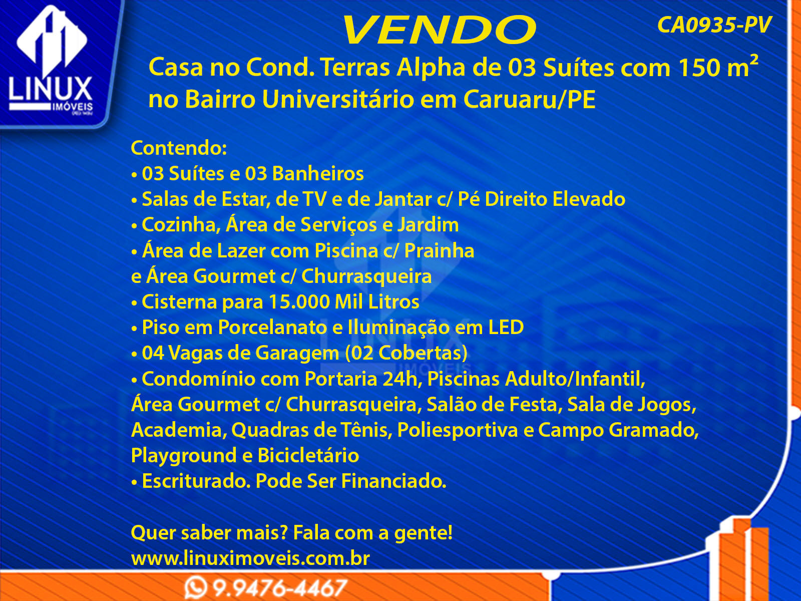 Casa no Cond. Terras Alpha em Caruaru/PE à Venda (CA0935-PV)