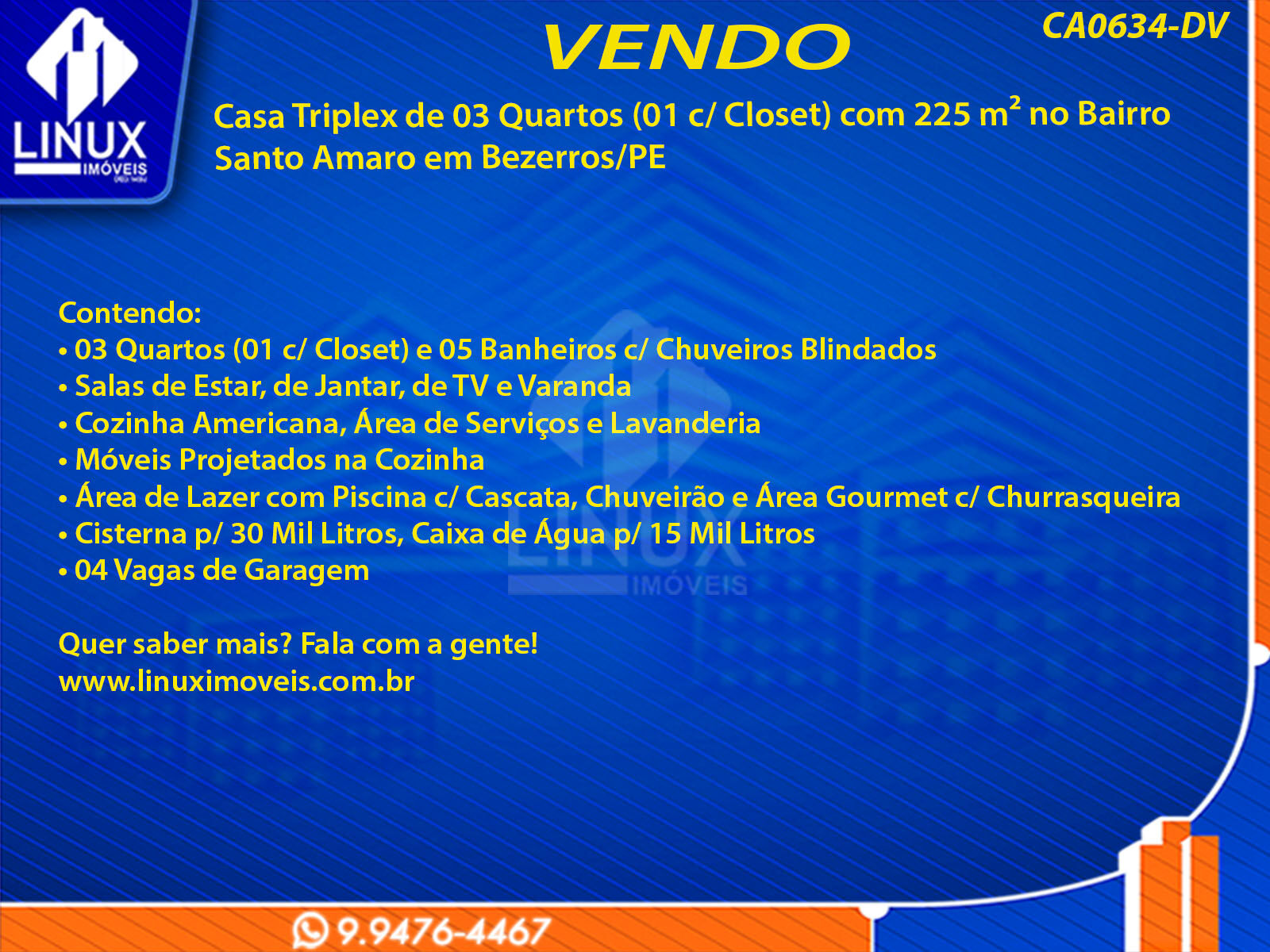 Casa Triplex no Bairro Santo Amaro em Bezerros/PE à Venda (CA0634-DV)