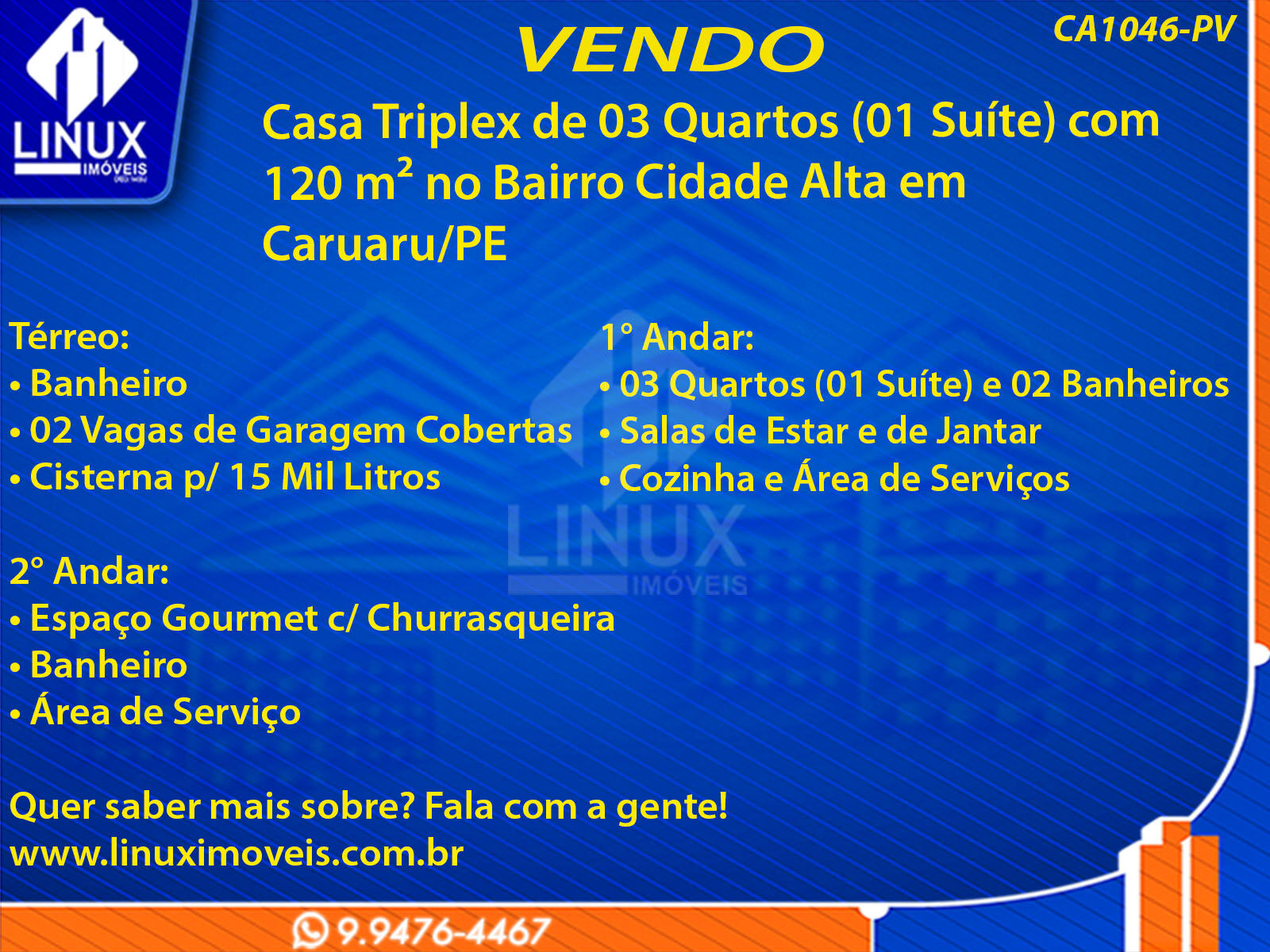 R$280.000,00 / VENDACasa Triplex no Bairro Cidade Alta em Caruaru/PE à Venda (CA1046-PV)
