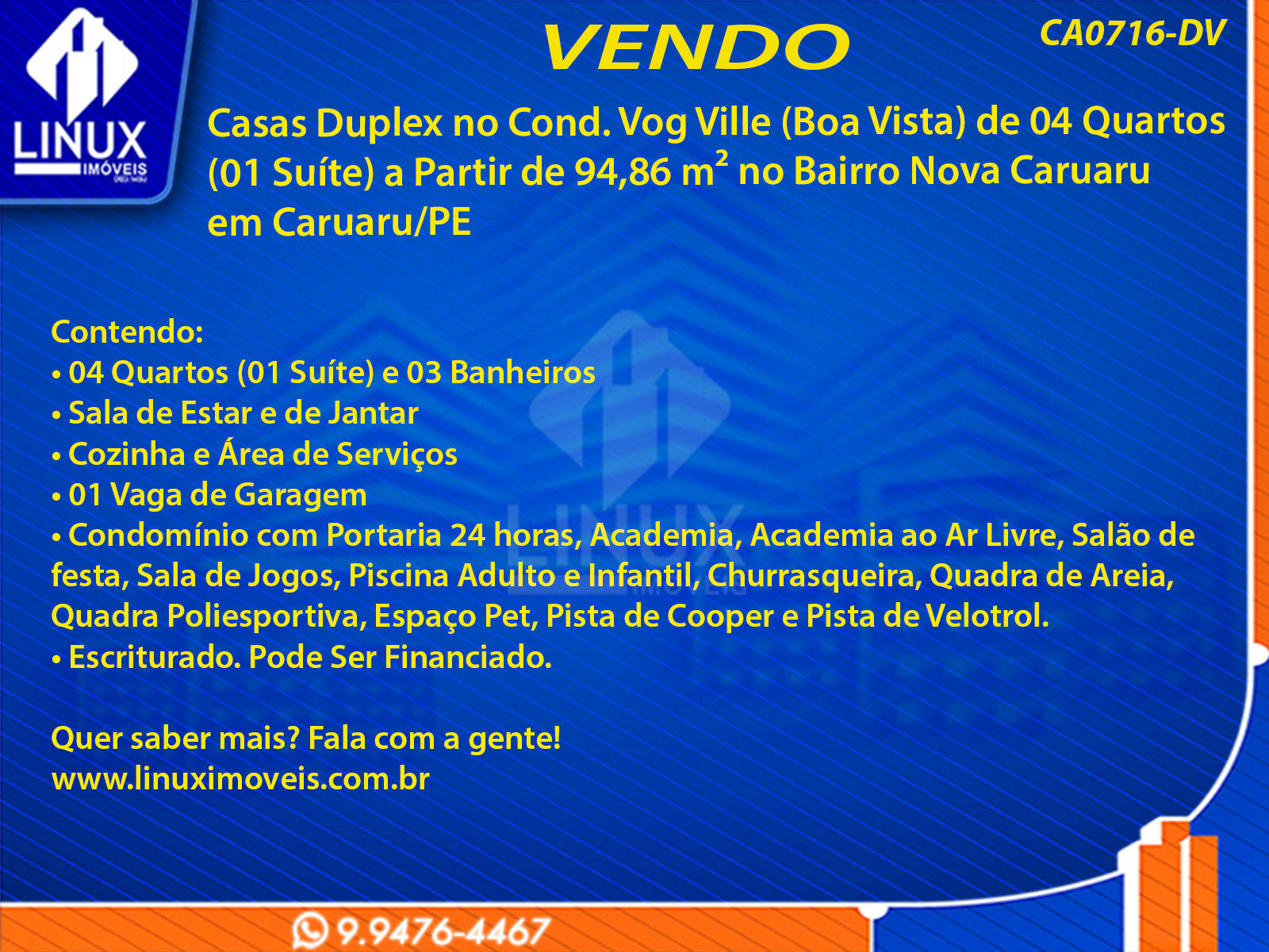 Casas Duplex no Cond. Vog Ville Boa Vista em Caruaru/PE à Venda (CA0716-DV)