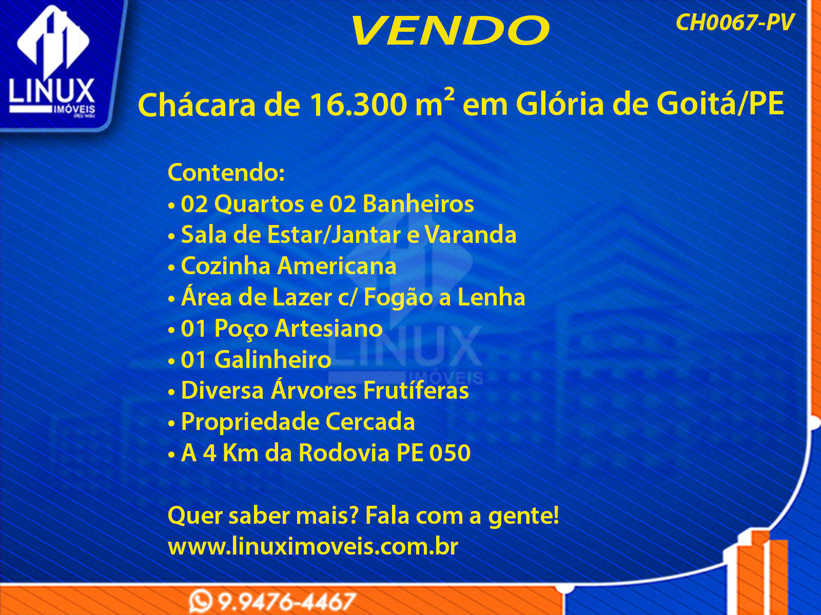 R$180.000,00 / VENDAChácara em Glória de Goitá/PE à Venda (CH0067-PV)