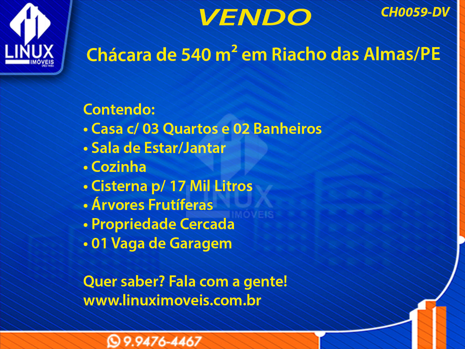 Chácara de 540 m² na Vila do Vitorino em Riacho das Almas/PE