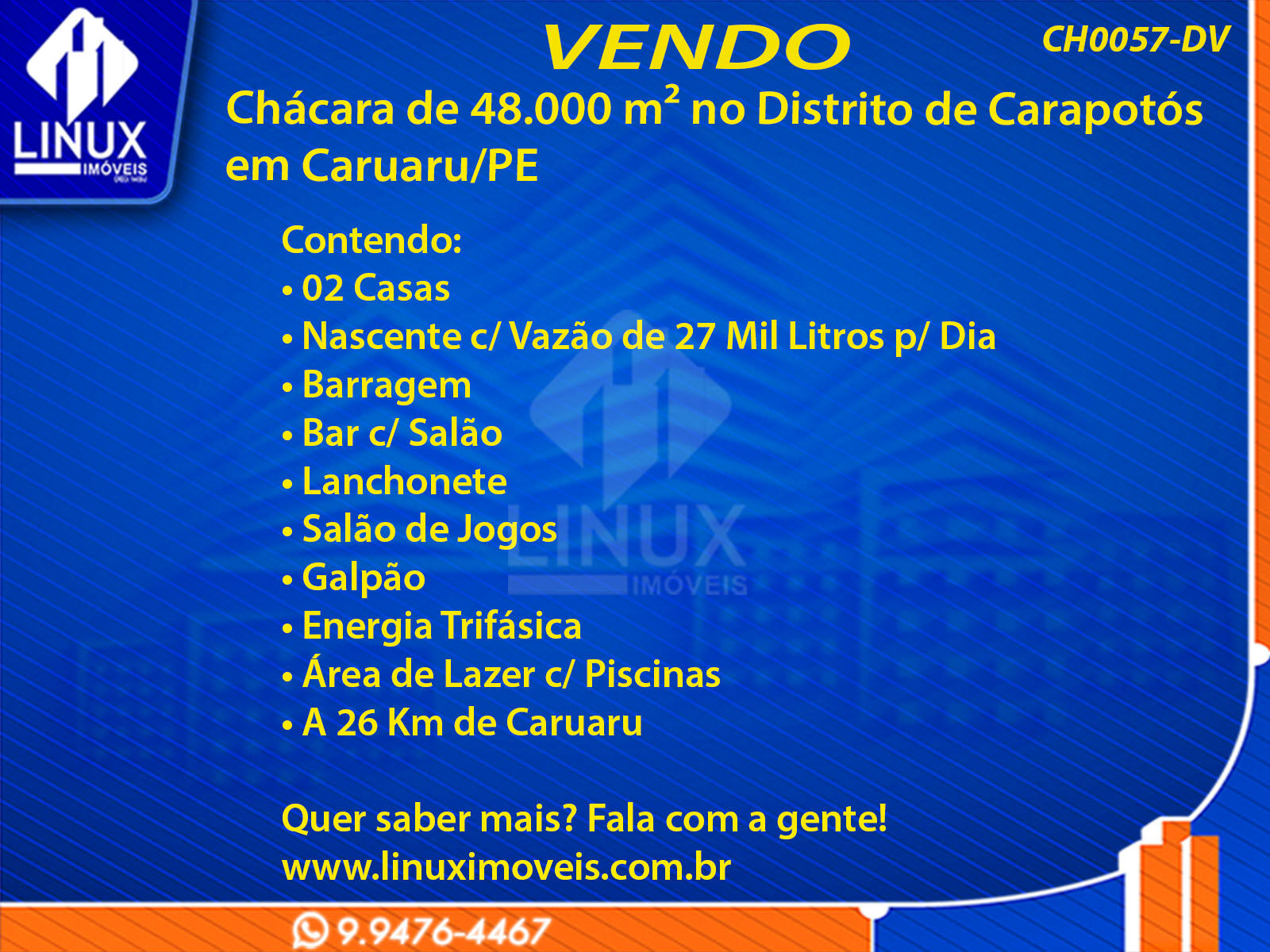 Chácara no Distrito de Carapotós em Caruaru/PE à Venda (CH0057-DV)