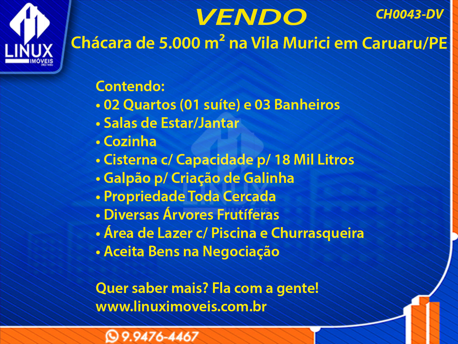 Chácara no Distrito de Murici em Caruaru/PE à Venda (CH0043-DV)