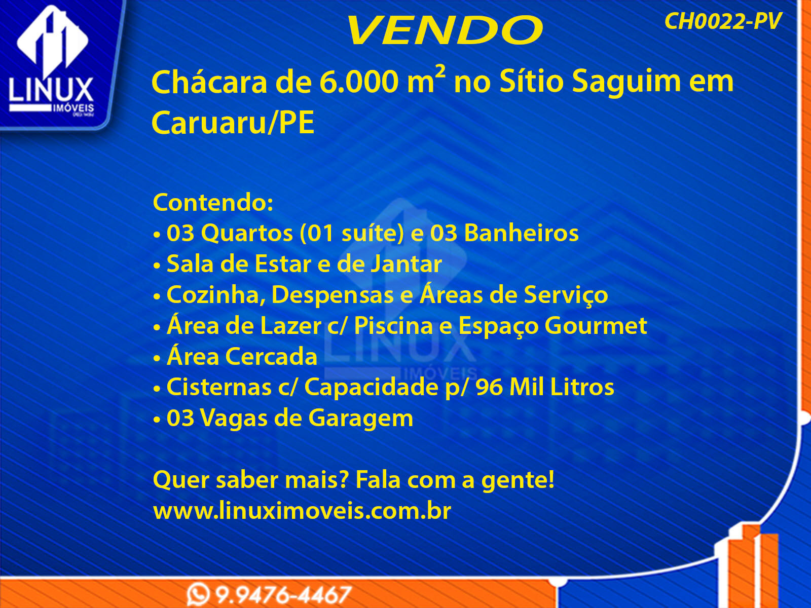 R$520.000,00 / VENDAChácara no Sítio Saguim em Caruaru/PE (CH0022-PV)