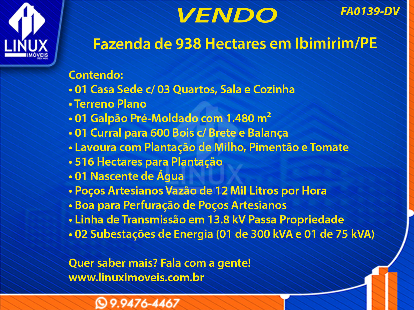 Fazenda em Ibimirim/PE à Venda (FA0139-DV)