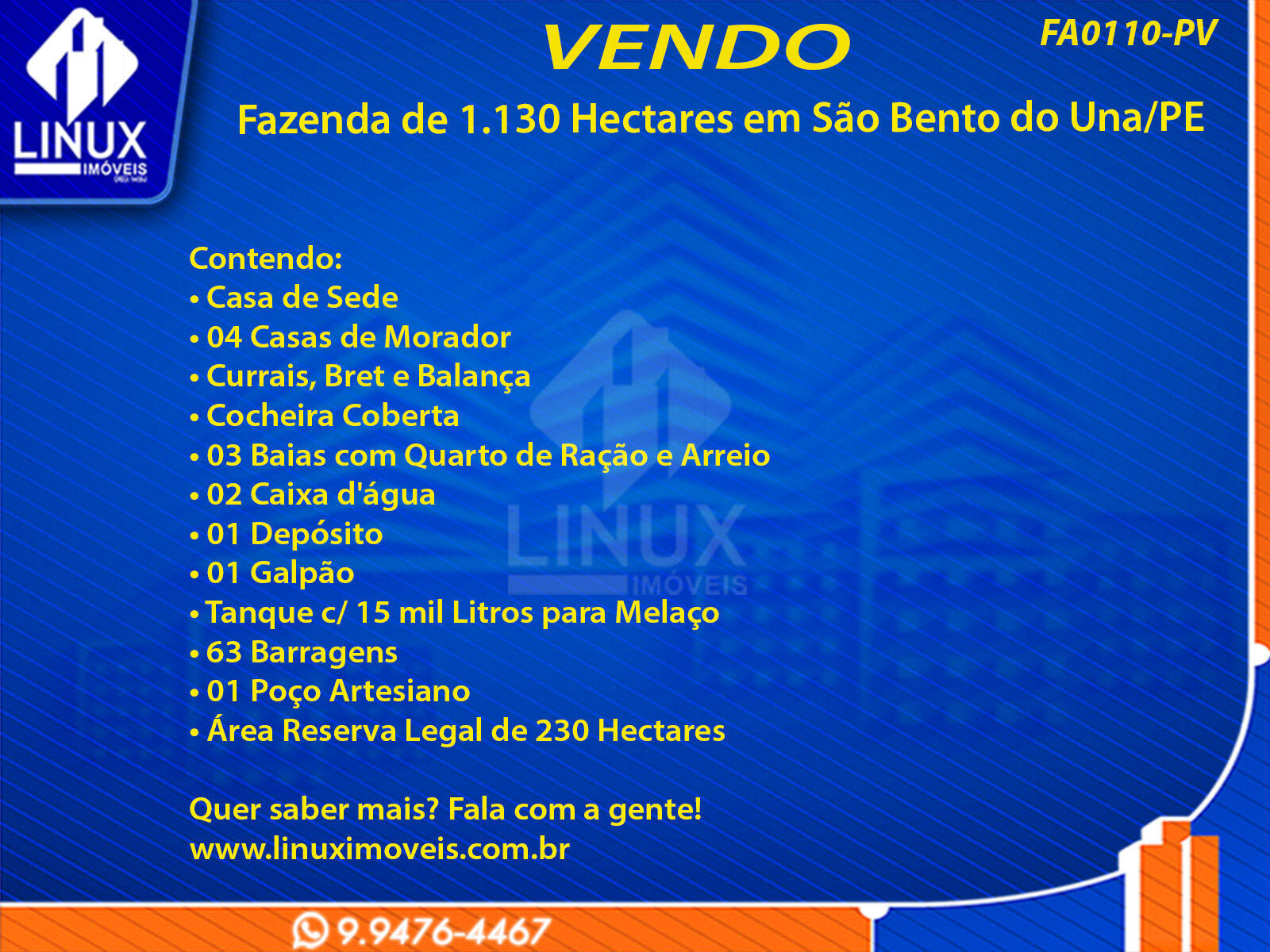 Fazenda em São Bento do Una/PE à Venda (FA0110-PV)
