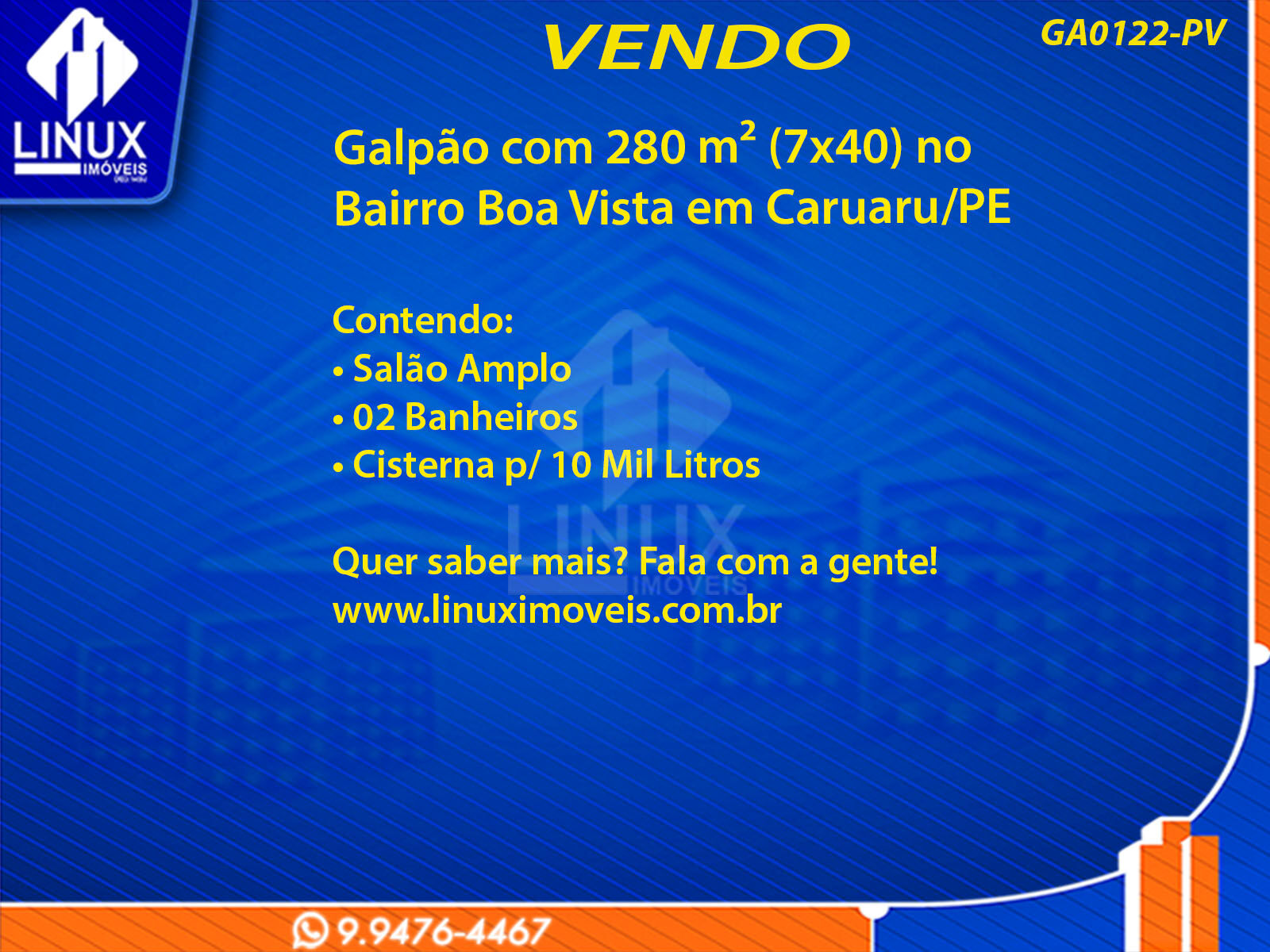 R$700.000,00 / VENDAGalpão no Bairro Boa Vista 1 em Caruaru/PE à Venda (GA0122-PV)