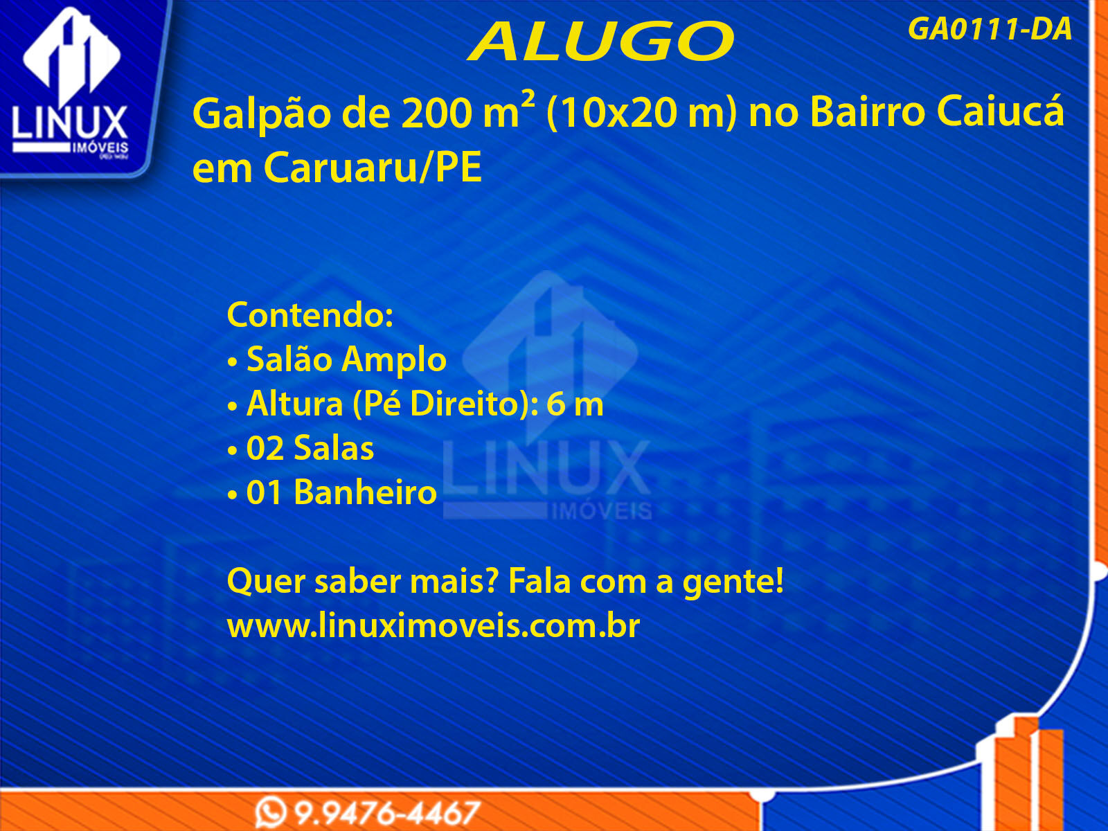 Galpão de 200 m² (10x20 m) no Bairro Caiucá em Caruaru/PE