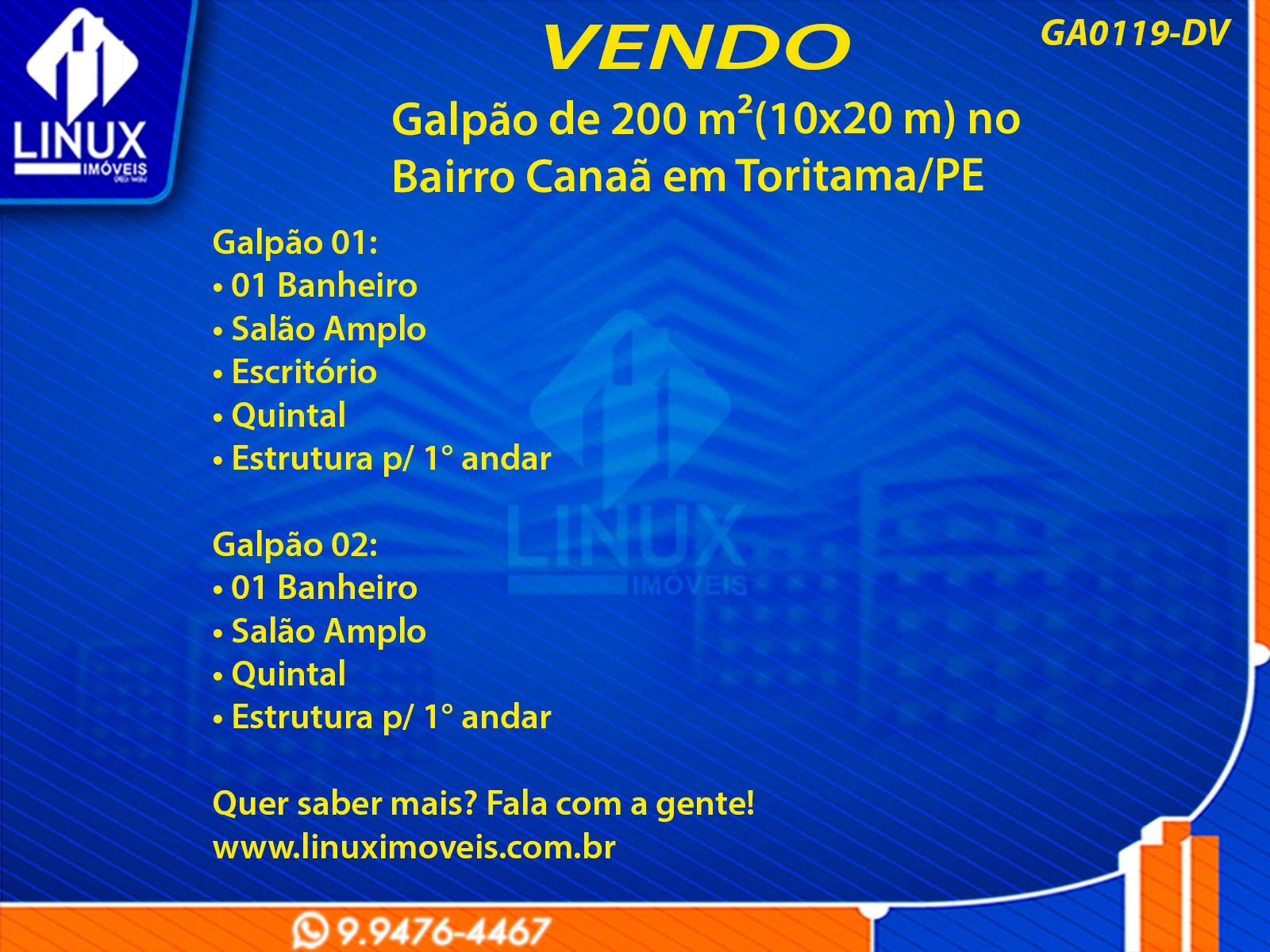 Galpão no Bairro Canaã em Toritama/PE à Venda (GA0119-DV)