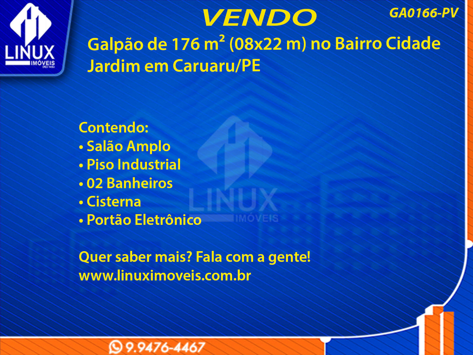 Galpão no Bairro Cidade Jardim em Caruaru/PE à Venda (GA0166-PV)