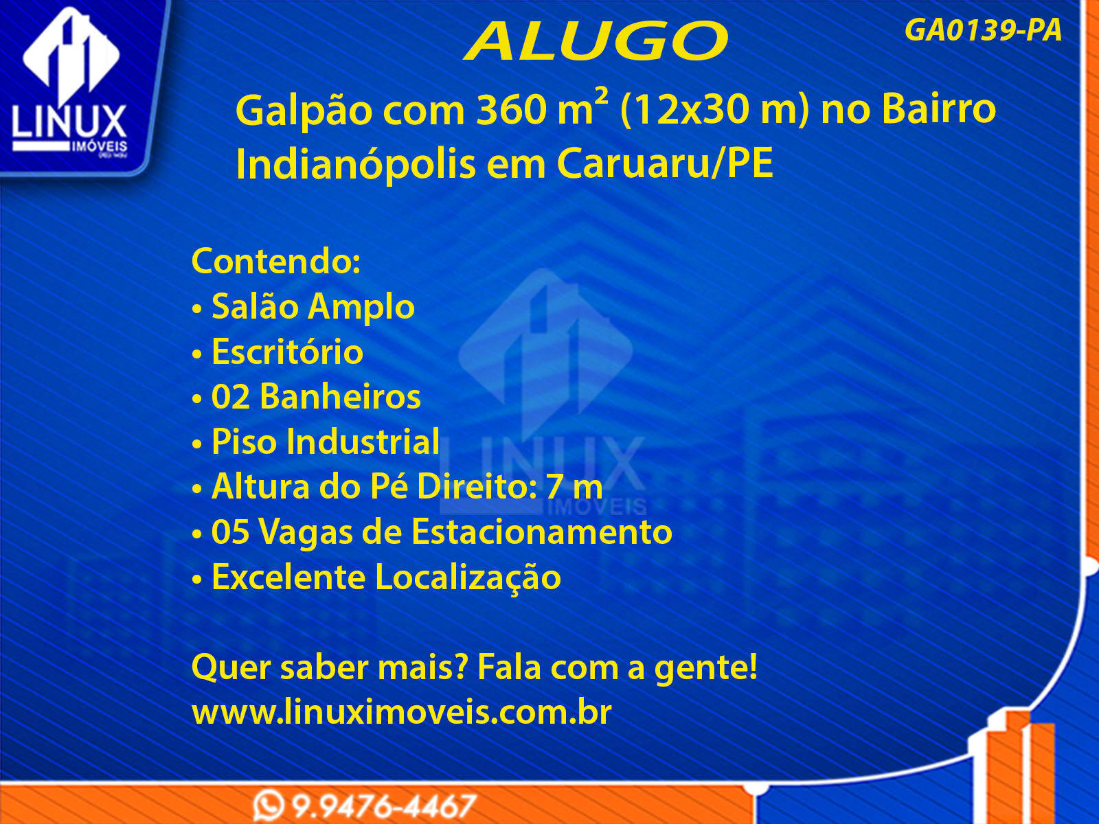 Galpão no Bairro Indianópolis em Caruaru/PE p/ Locação (GA0139-PA)