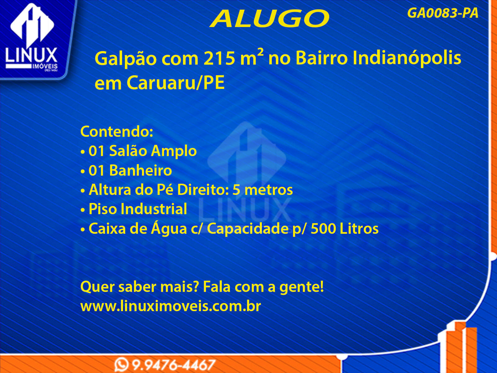 Galpão com 215 m² no Bairro Indianópolis em Caruaru/PE