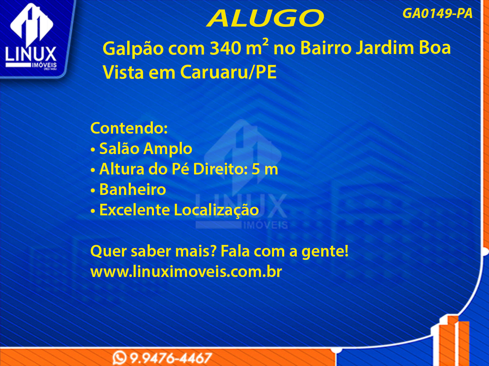 Galpão no Bairro Jardim Boa Vista em Caruaru/PE p/ Locação (GA0149-PA)