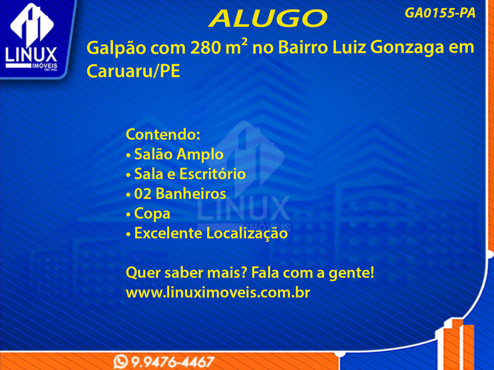 R$7.000,00 / ALUGUELGalpão no Bairro Luiz Gonzaga em Caruaru/PE p/ Locação (GA0155-PA)