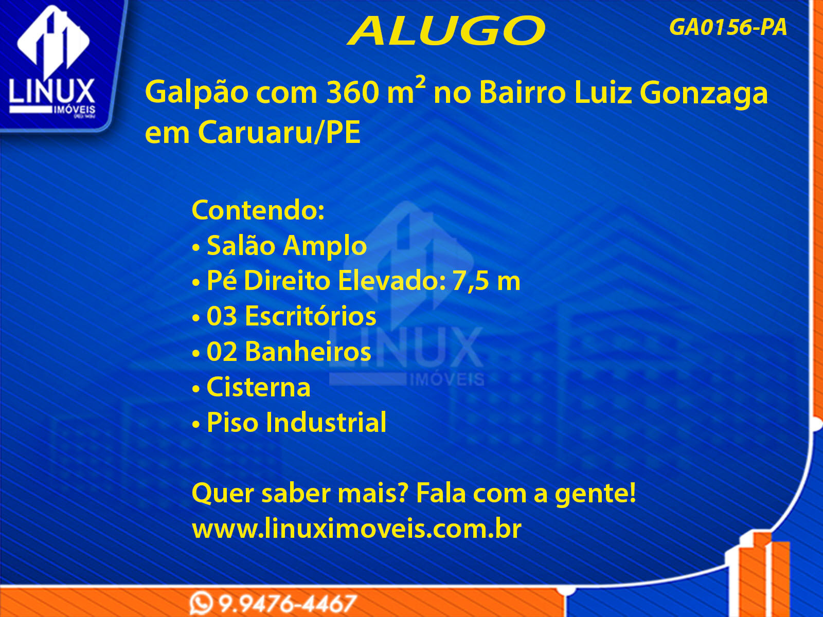 Galpão no Bairro Luiz Gonzaga em Caruaru/PE p/ Locação (GA0156-PA)