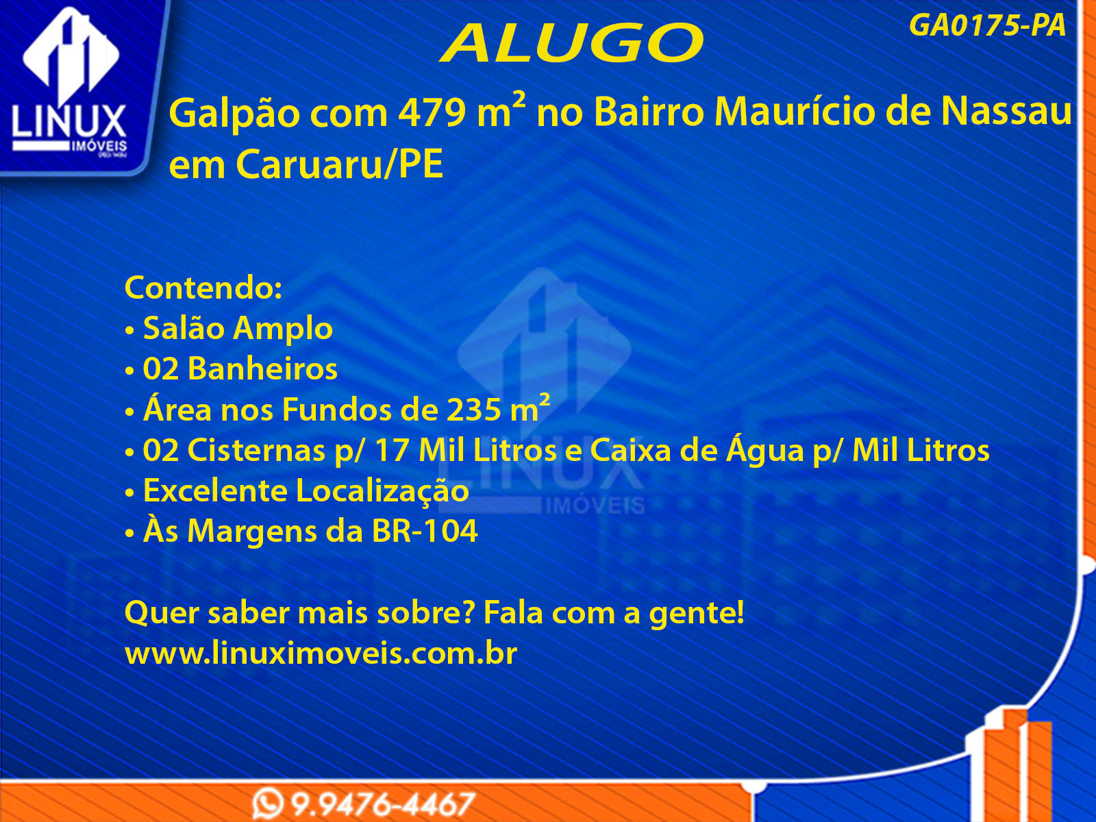 Galpão no Bairro Maurício de Nassau em Caruaru/PE p/ Locação (GA0175-PA)