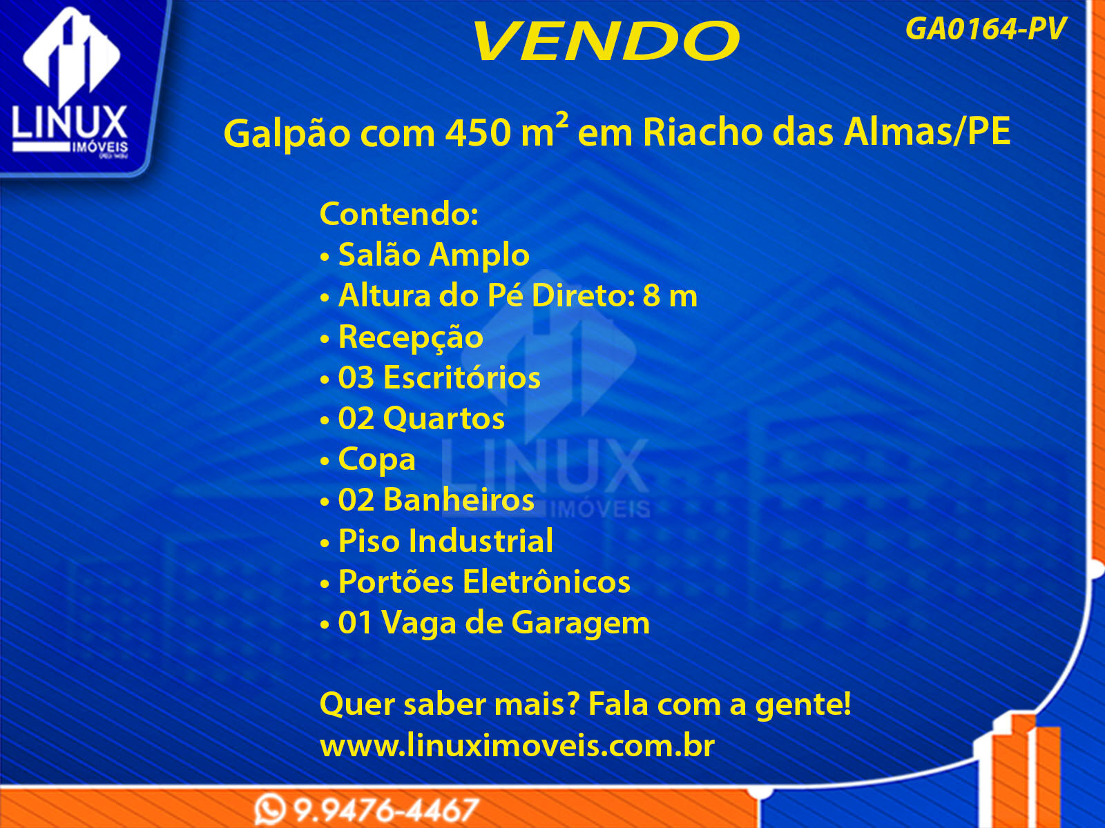 Galpão no Bairro Nova Caruaru em Riacho das Almas/PE à Venda (GA0164-PV)