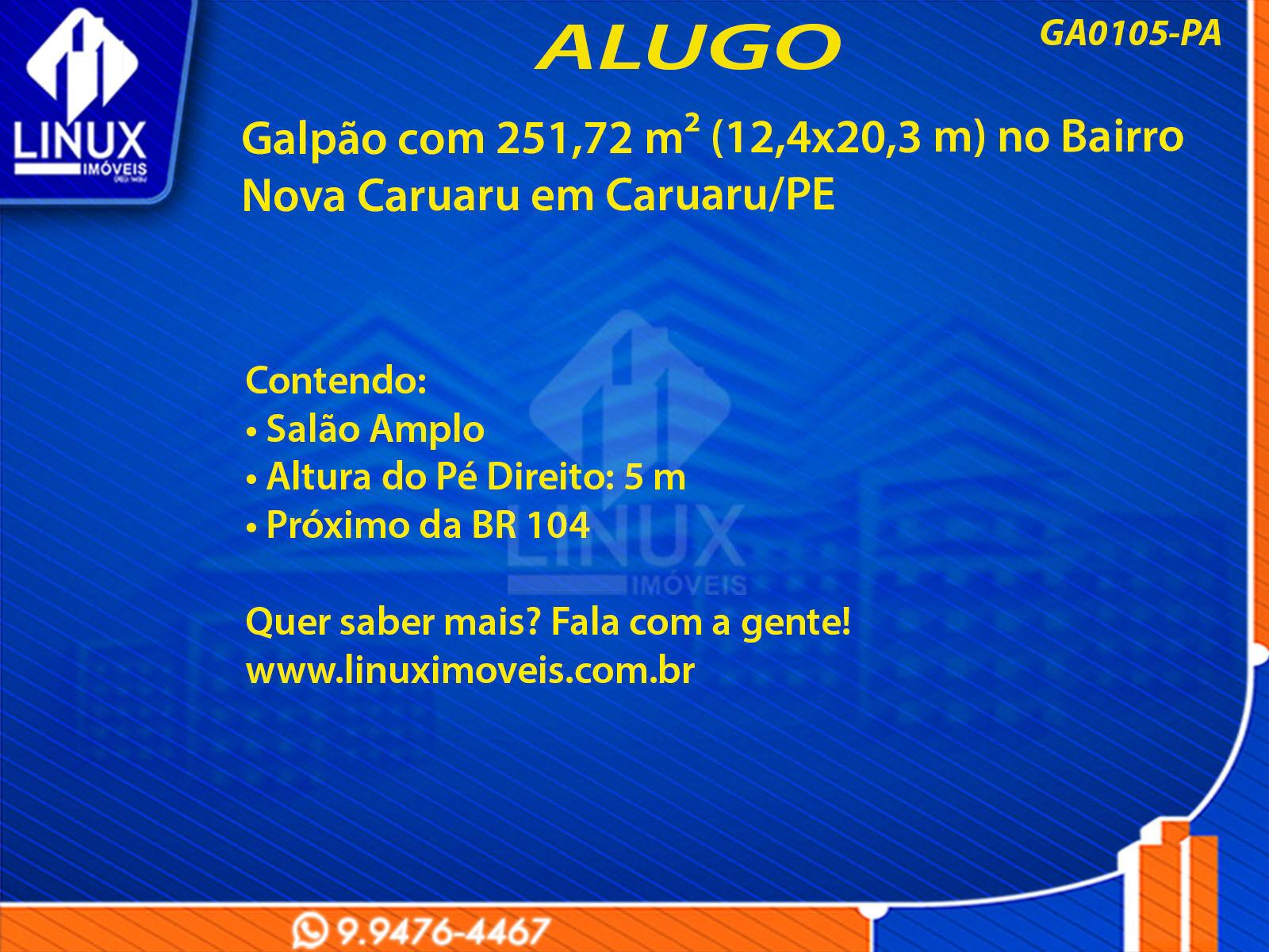 Galpão no Bairro Nova Caruaru p/ Locação (GA0105-PA)