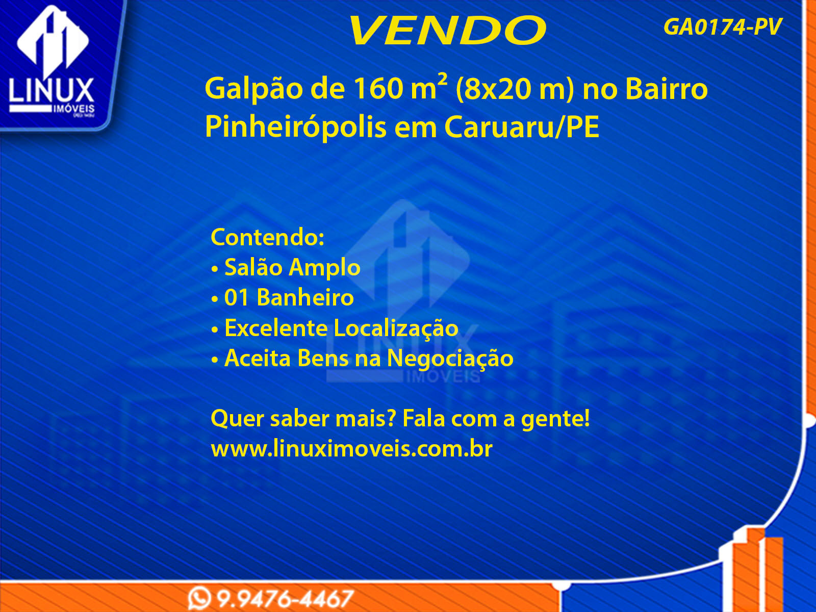R$250.000,00 / VENDAGalpão no Bairro Pinheirópolis em Caruaru/PE à Venda (GA0174-PV)
