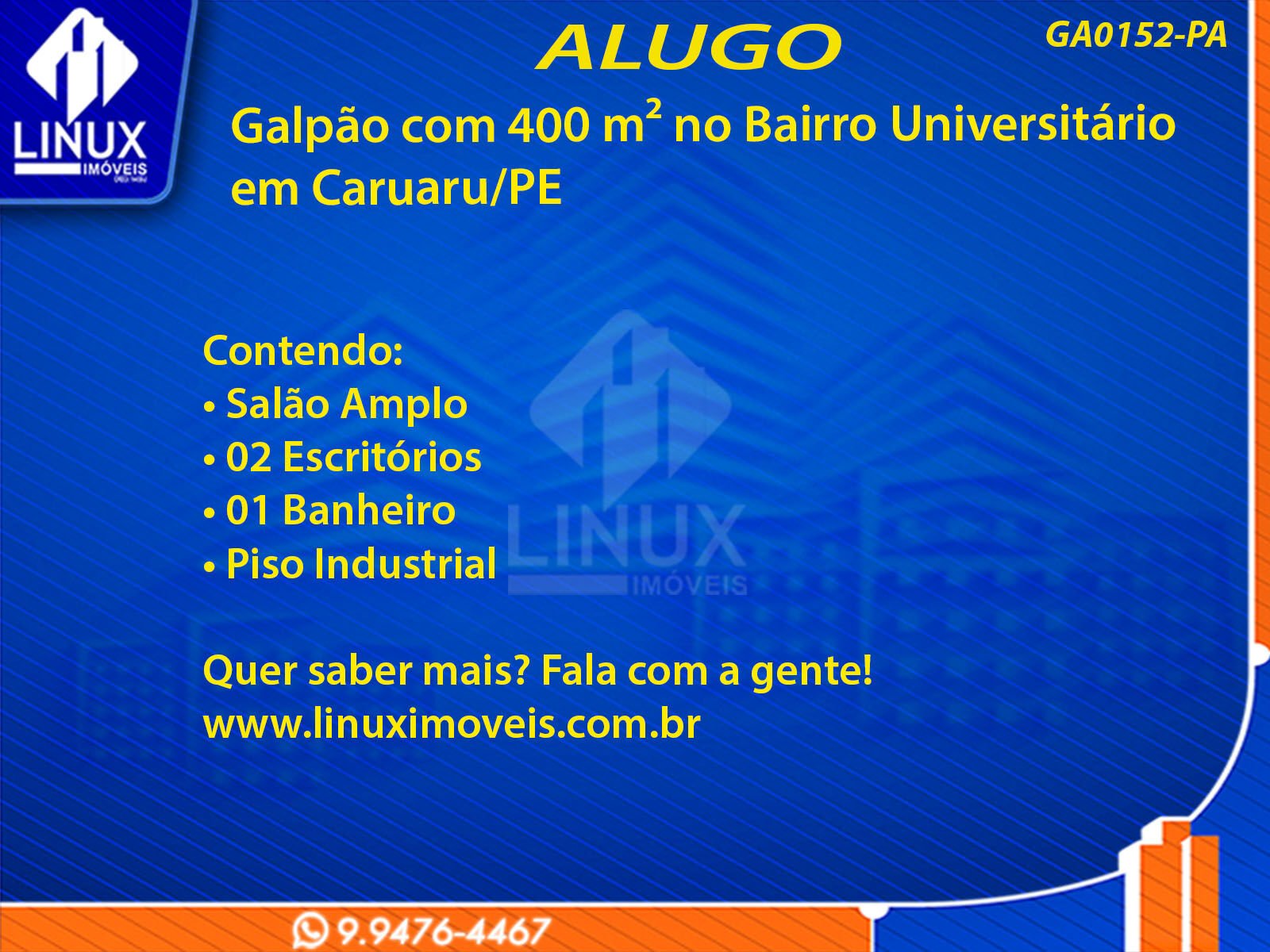 Galpão no Bairro Universitário em Caruaru/PE p/ Locação (GA0152-PA)