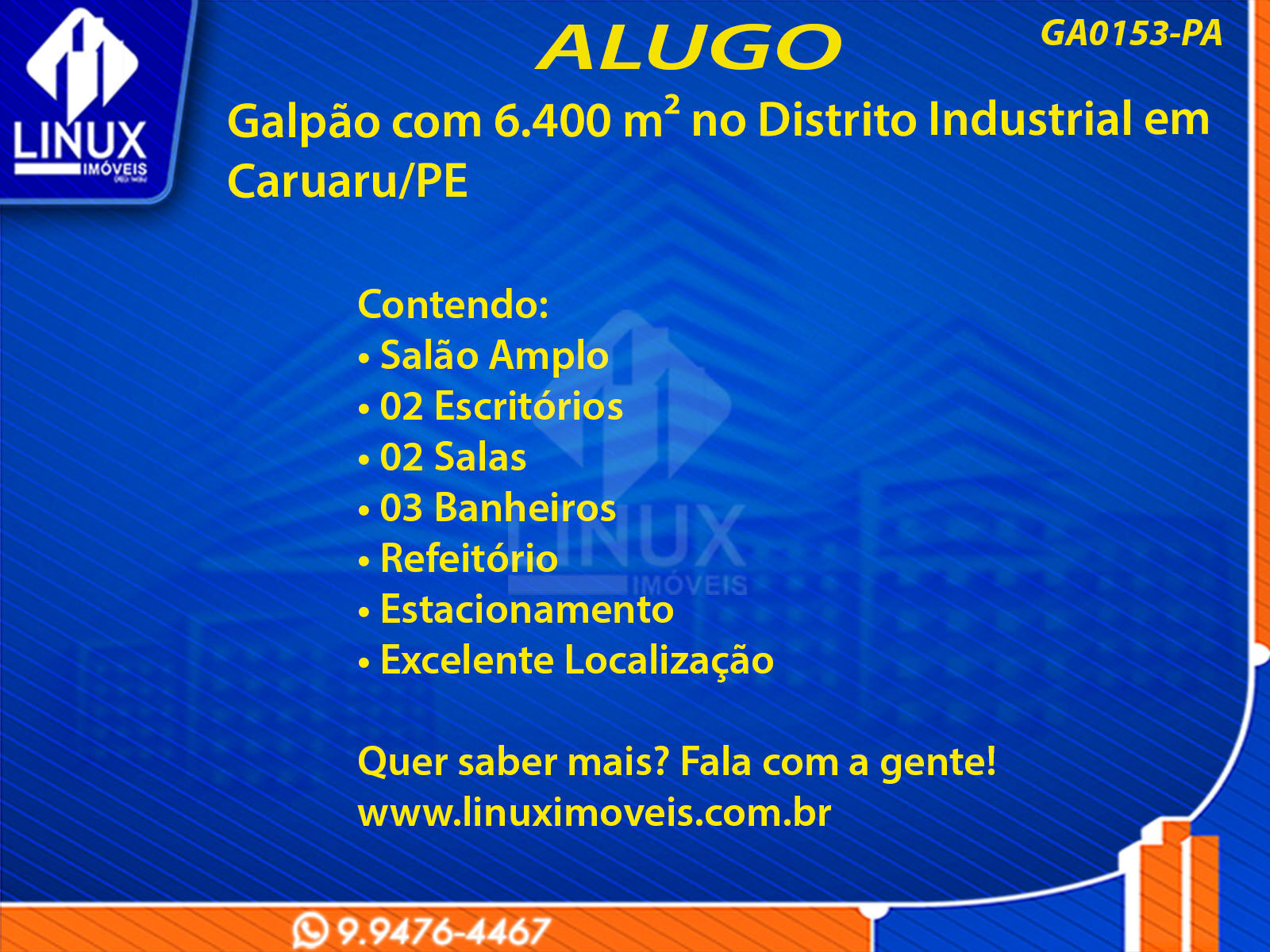 R$18.000,00 / ALUGUELGalpão no Distrito Industrial em Caruaru/PE p/ Locação (GA0153-PA)