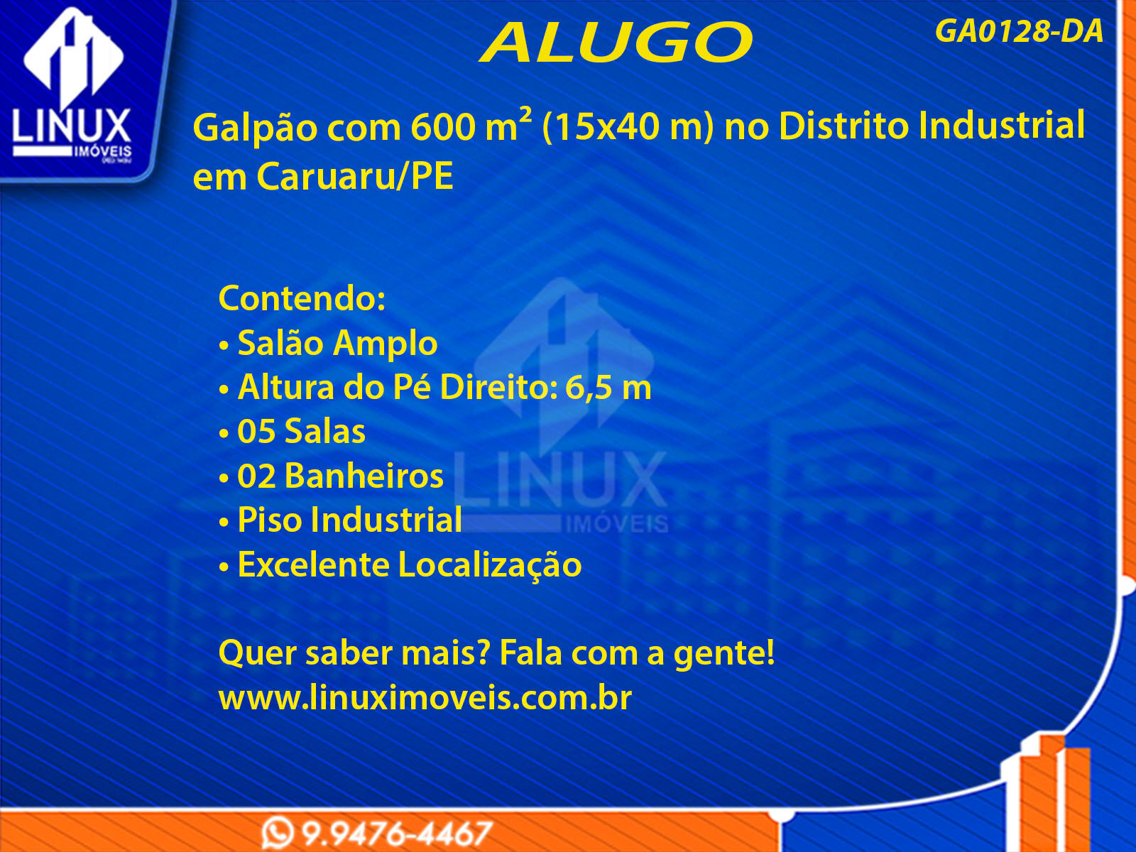 • Altura do Pé Direito: 6,5 m