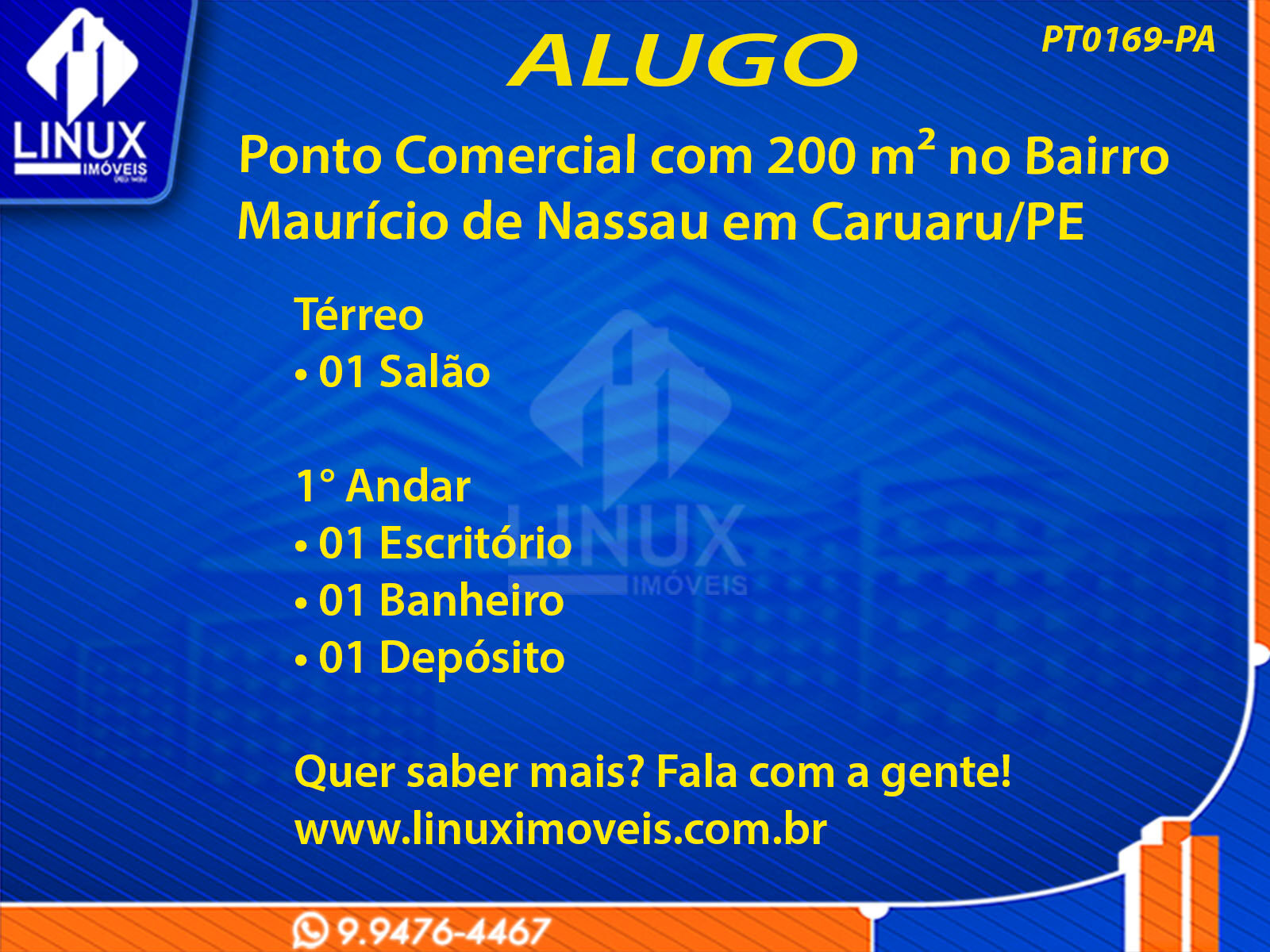 Ponto Comercial no Bairro Maurício de Nassau em Caruaru p/ Locação (PT0169-PA)