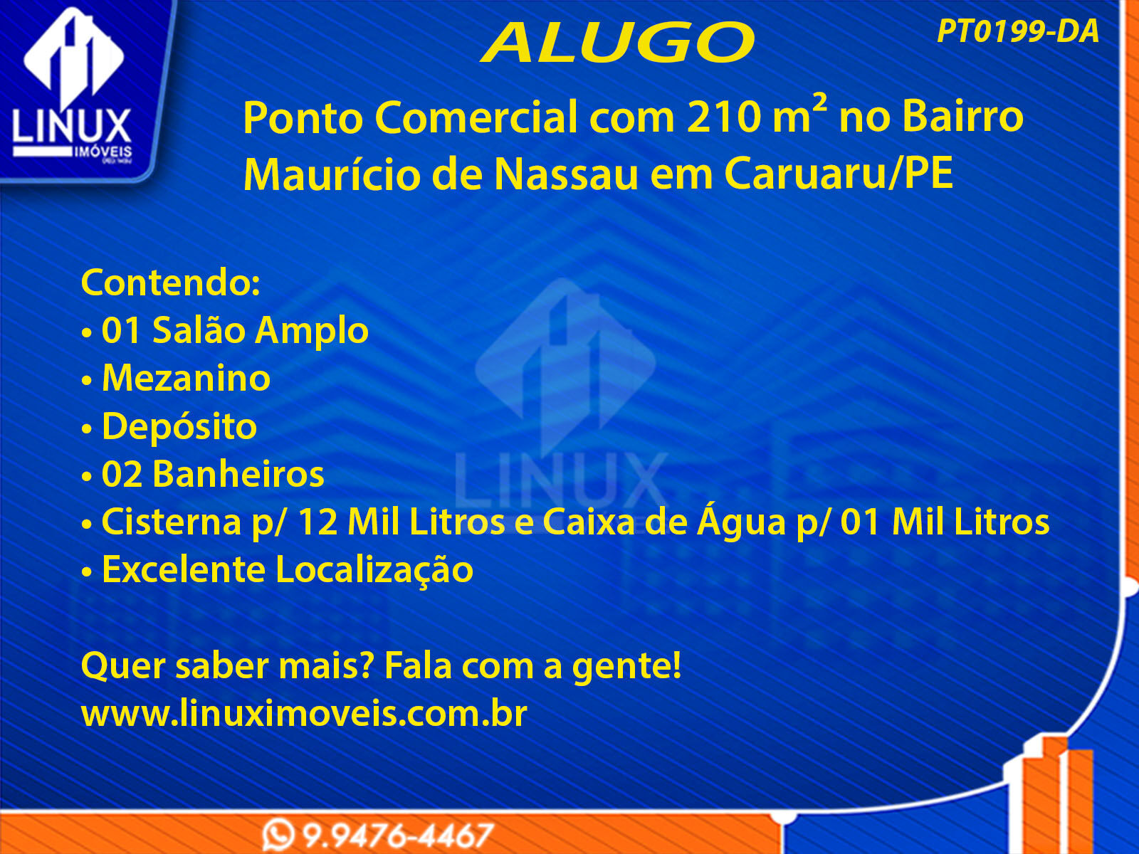 Ponto Comercial no Bairro Maurício de Nassau em Caruaru/PE p/ Locação (PT0199-DA)