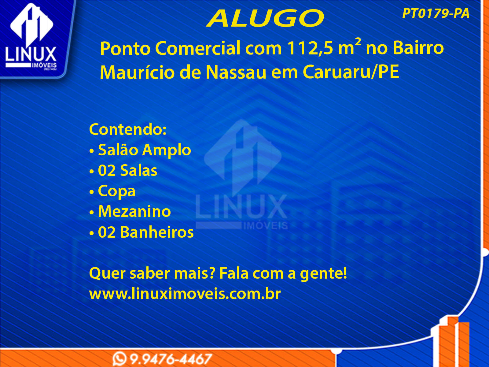 Ponto Comercial no Bairro Maurício de Nassau p/ Locação (PT0179-PA)