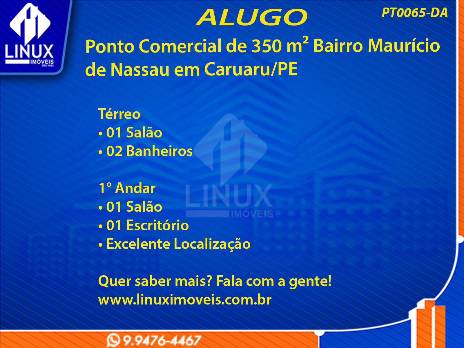 R$20.000,00 / ALUGUELPonto Comercial no Bairrro Maurício de Nassau p/ Locação (PT0065-DA)