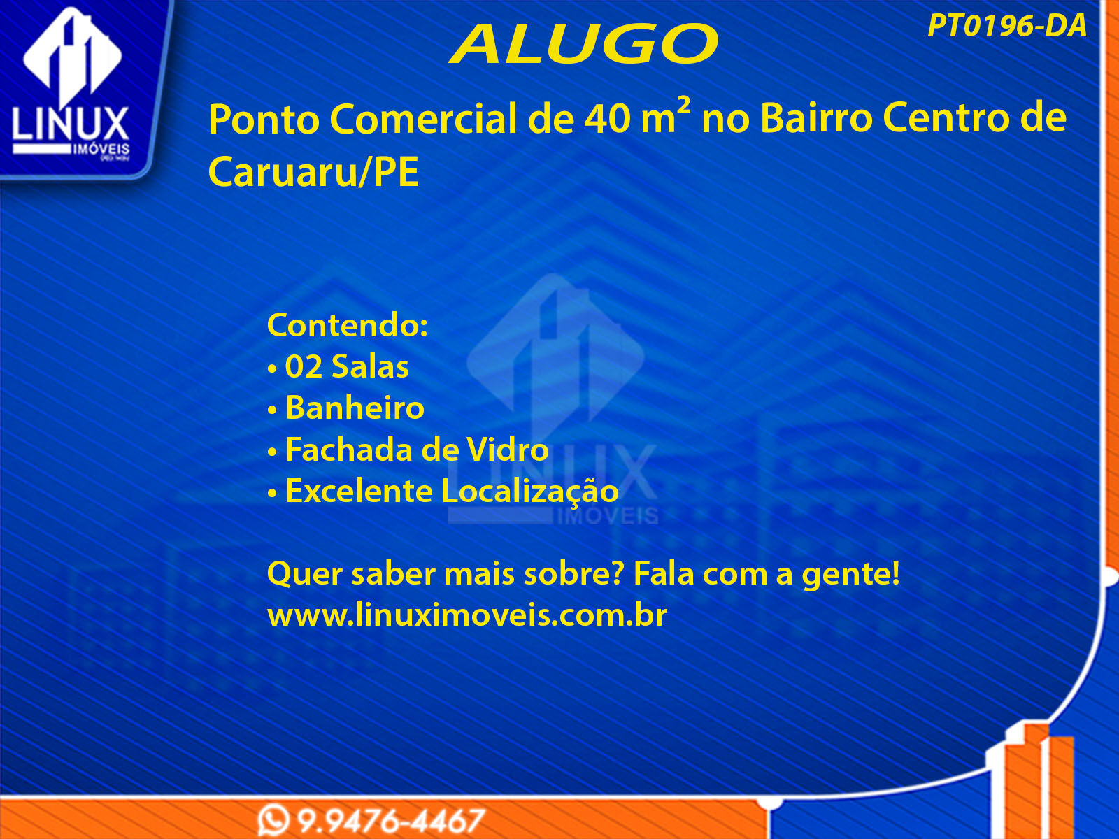 R$1.500,00 / ALUGUELPonto Comercial no Centro de Caruaru p/ Locação (PT0196-DA)