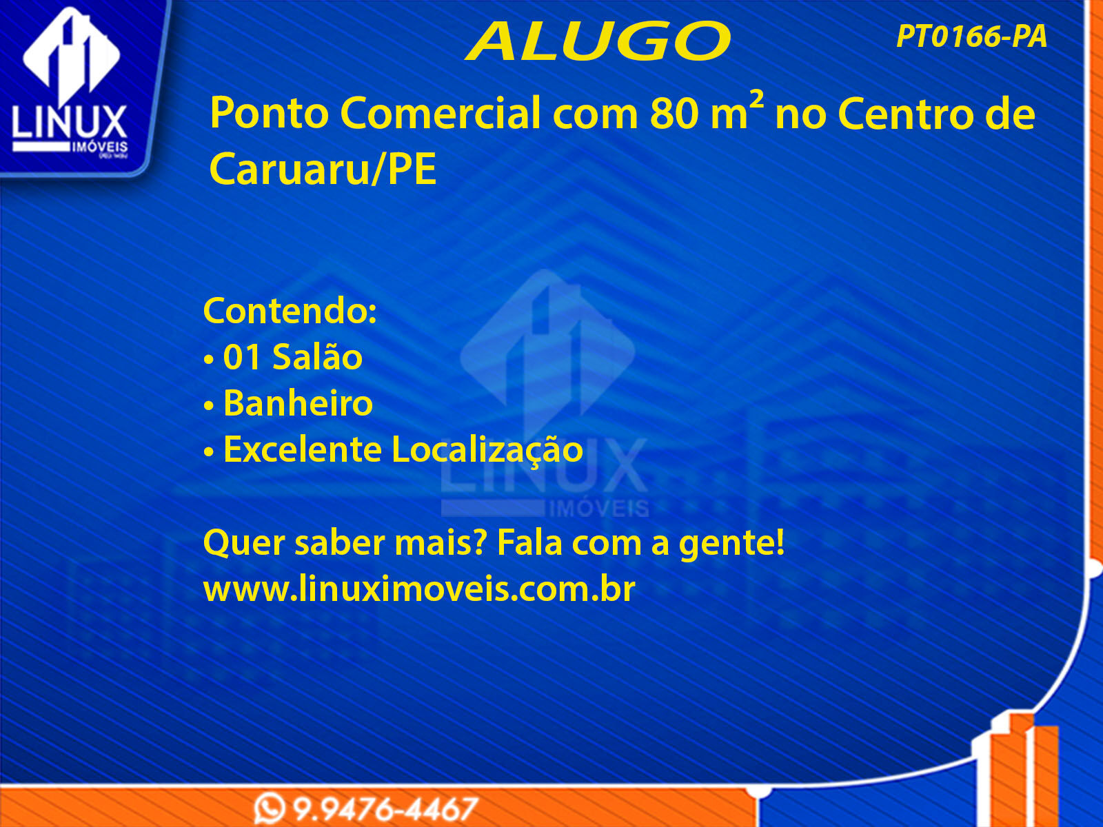 Ponto Comercial no Centro de Caruaru p/ Locação (PT0166-PA)