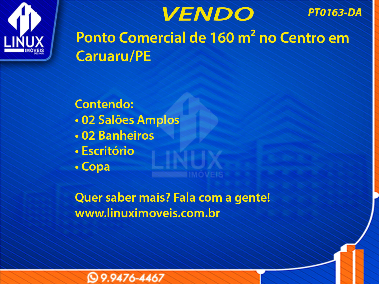 R$3.200,00 / ALUGUELPonto Comercial no Centro de Caruaru p/ Locação (PT0163-DA)