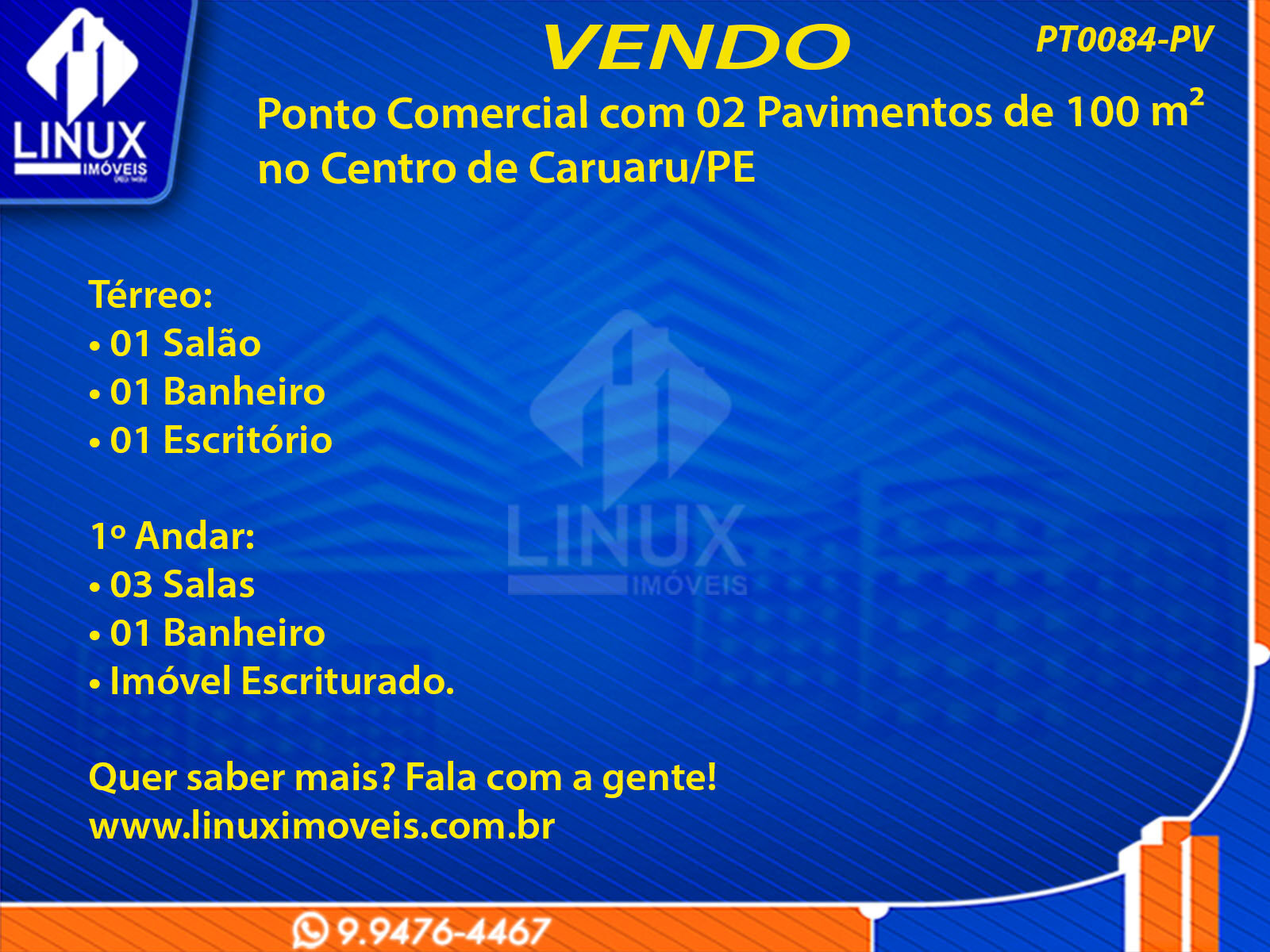 Ponto Comercial com 02 Pavimentos de 100 m² no Centro de Caruaru/PE