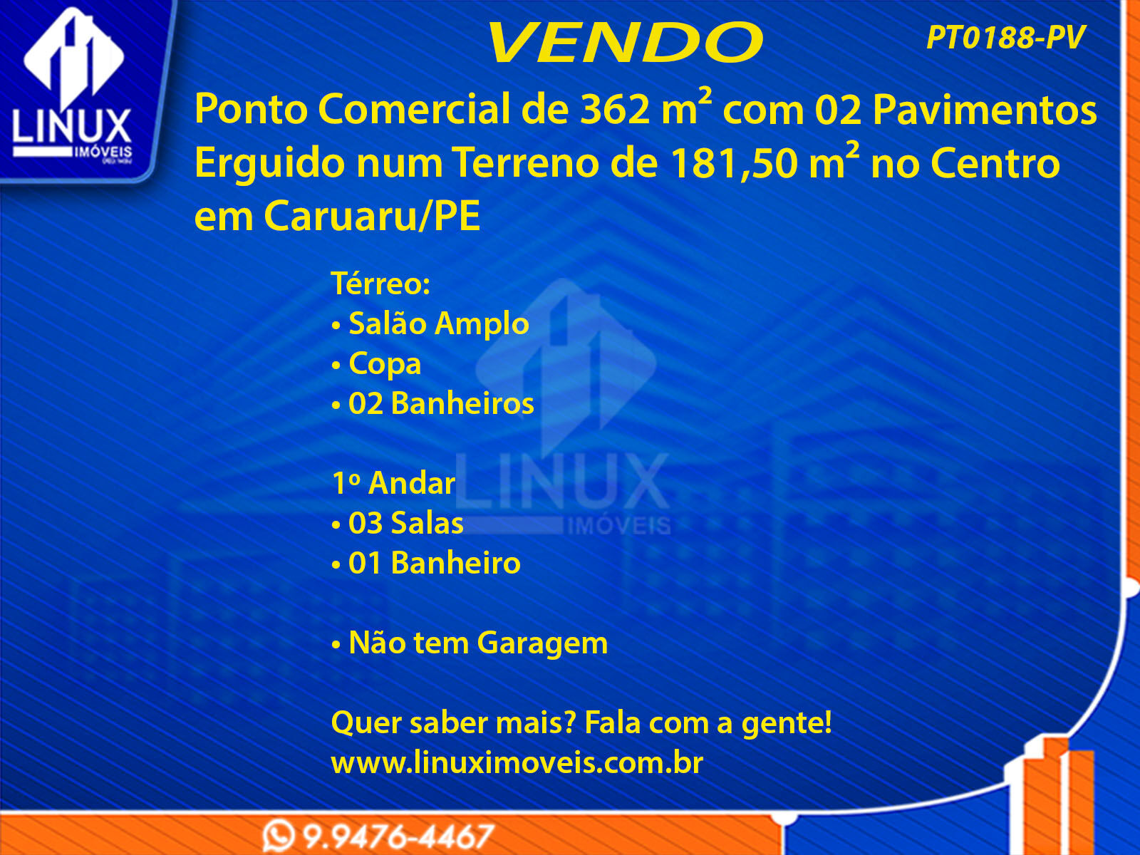 R$900.000,00 / VENDAPonto Comercial no Centro em Caruaru/PE à Venda (PT0188-PV)