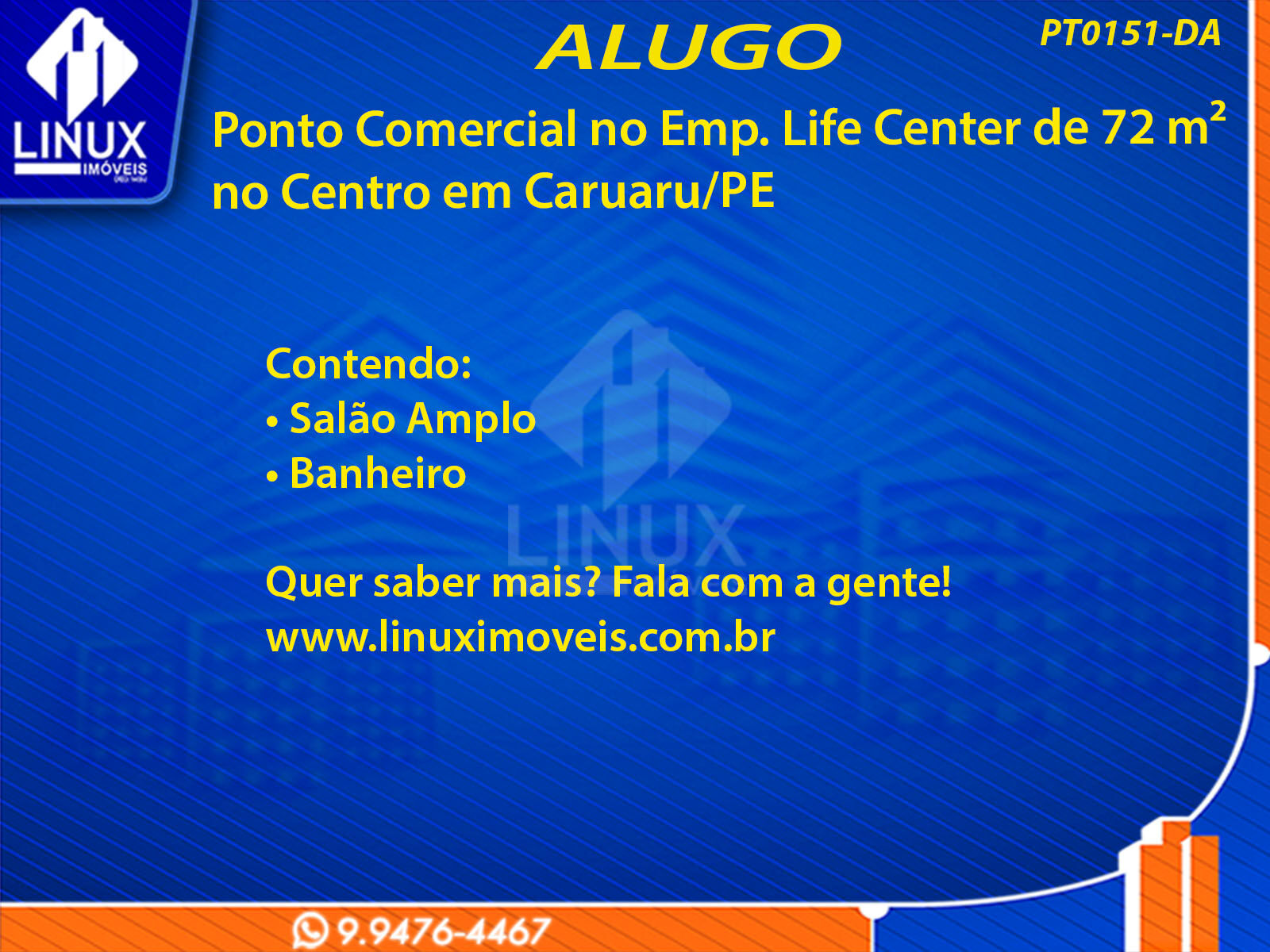 Ponto Comercial no Emp. Life Center em Caruaru/PE p/Locação (PT0151-DA)