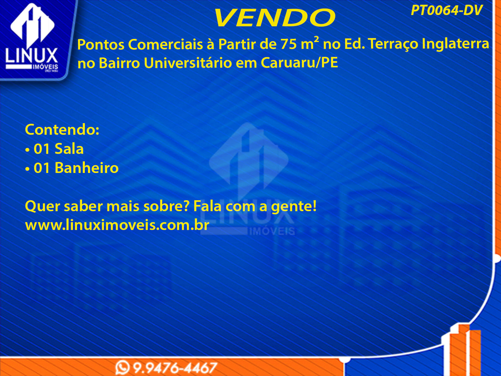 Pontos Comerciais à Partir de 75 m² no Ed. Terraço Inglaterra no Bairro Universitário em Caruaru/PE
