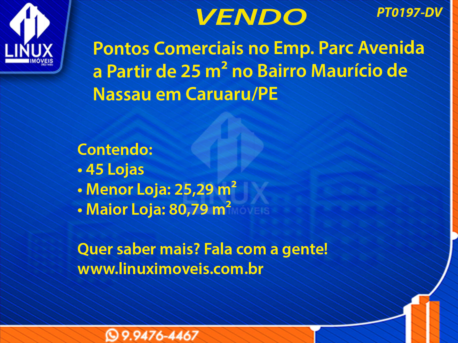 Pontos Comerciais no Emp. Parc Avenida em Caruaru/PE à Venda (PT0197-DV)