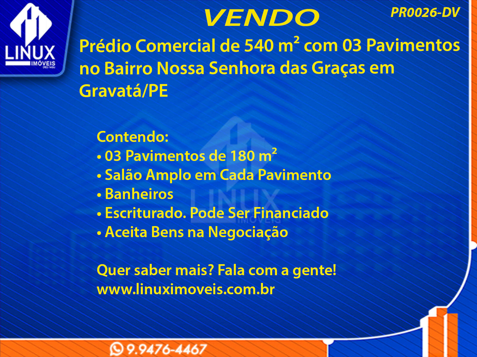 R$2.700.000,00 / VENDAPrédio Comercial em Gravatá/PE à Venda (PR0026-DV)
