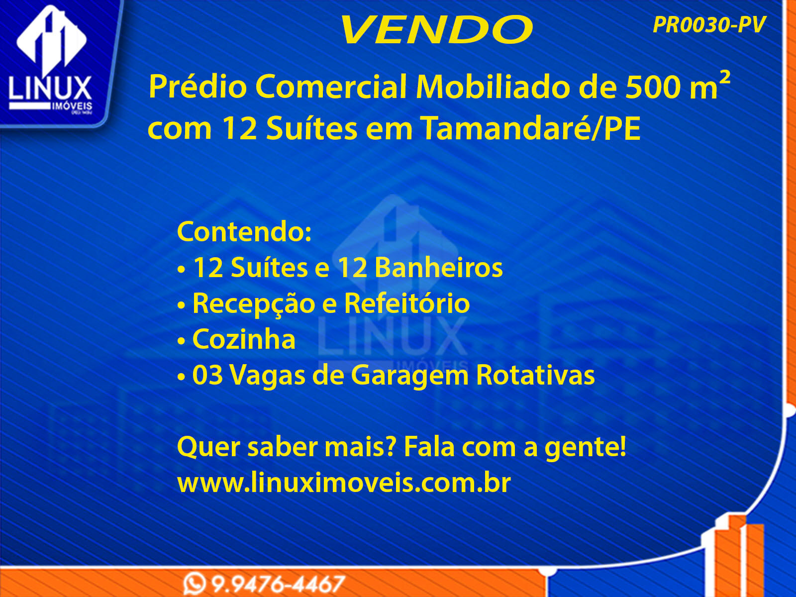 R$1.200.000,00 / VENDAPrédio Comercial Mobiliado no Centro em Tamandaré/PE à Venda (PR0030-PV)