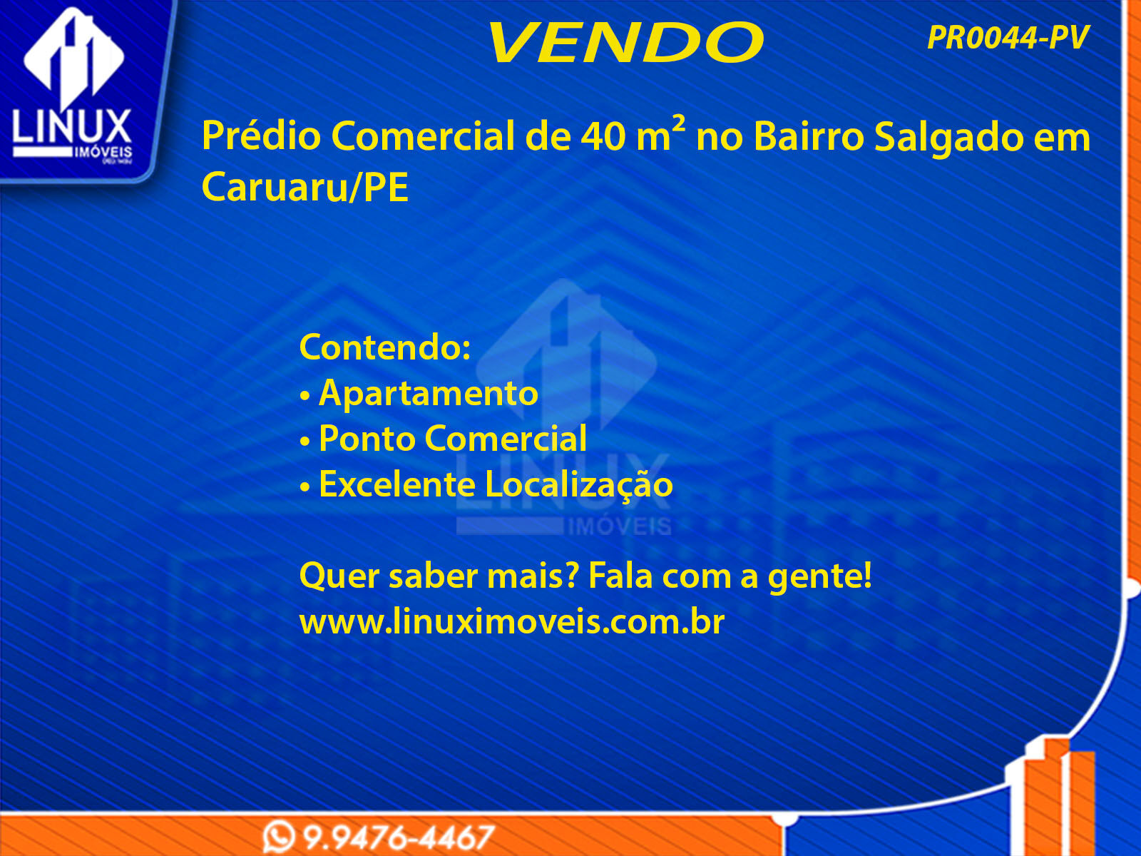 R$250.000,00 / VENDAPrédio Comercial no Bairro Salgado em Caruaru à Venda (PR0044-PV)