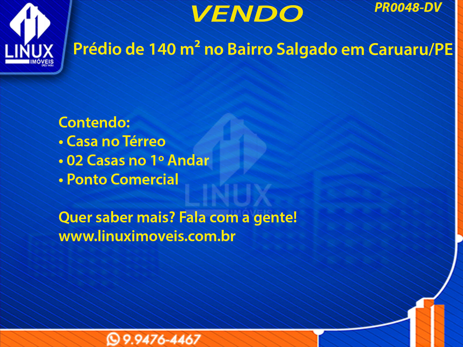 R$300.000,00 / VENDAPrédio no Bairro Salgado em Caruaru/PE à Venda (PR0048-DV)