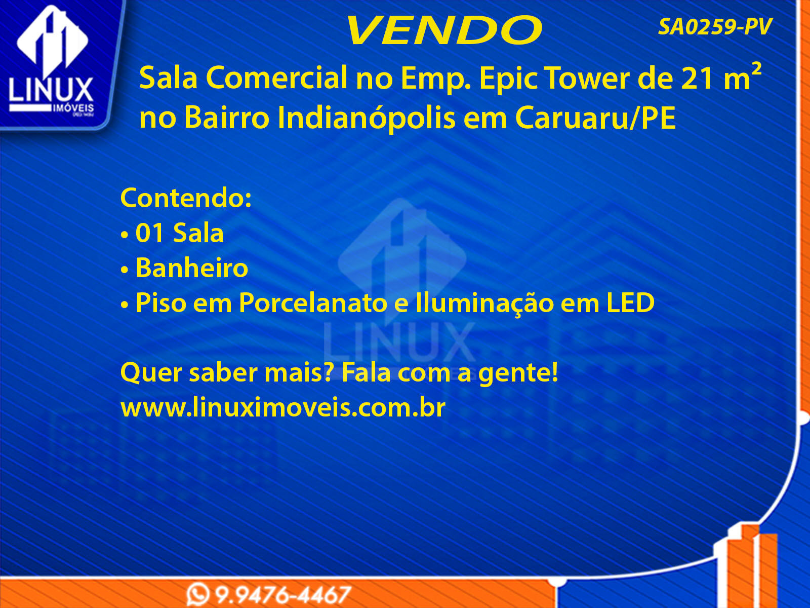 Sala Comercial no Emp. Epic Tower em Caruaru/PE à Venda (SA0259-PV)