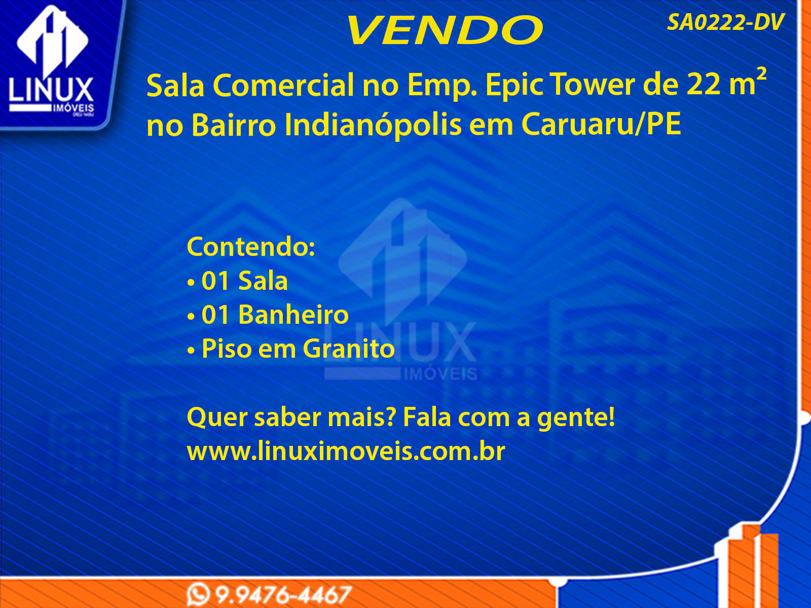 Sala Comercial no Emp. Epic Tower em Caruaru/PE à Venda (SA0222-DV)