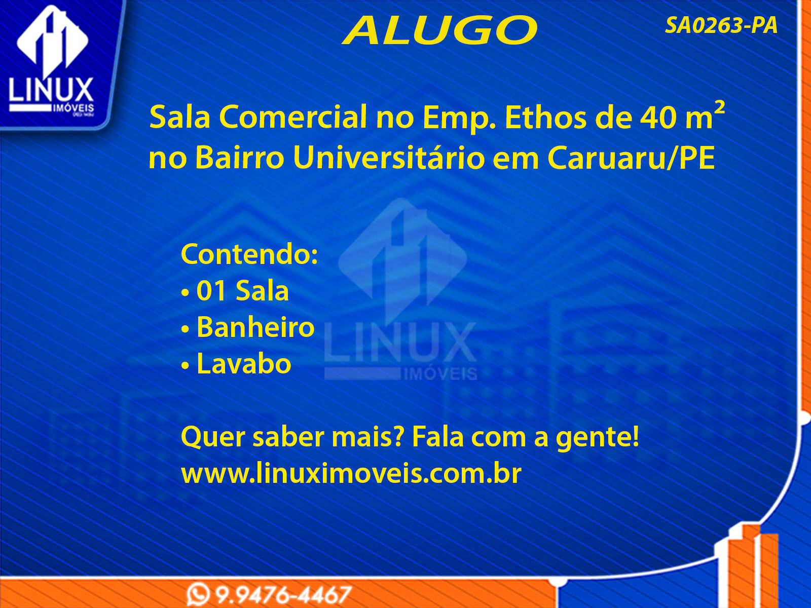 Sala Comercial no Emp. Ethos em Caruaru/PE p/ Locação (SA0263-PA)