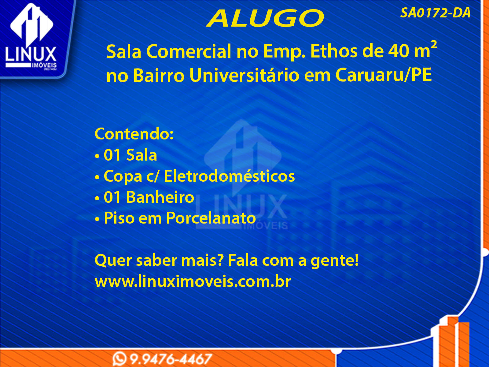 Sala Comercial no Emp. Ethos de 40 m² no Bairro Universitário em Caruaru/PE