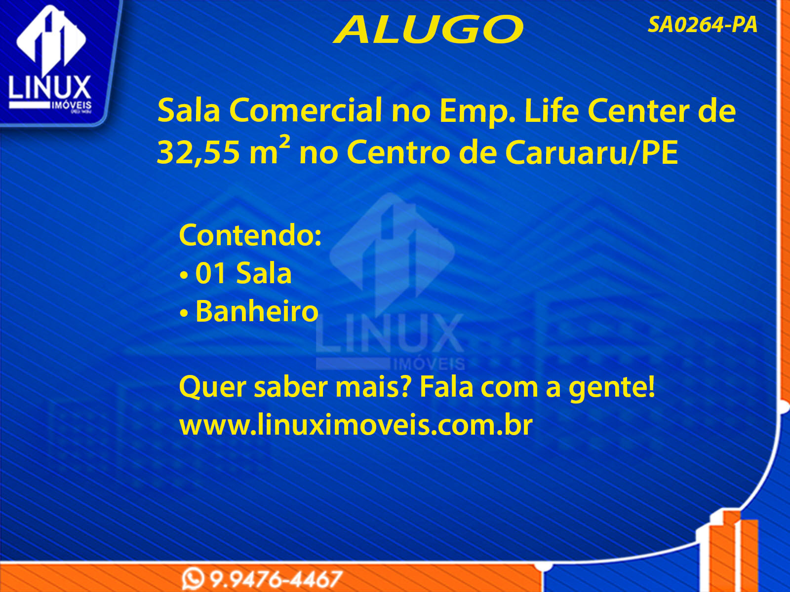 R$2.600,00 / ALUGUELSala Comercial no Emp. Life Center em Caruaru/PE p/ Locação (SA0264-PA)