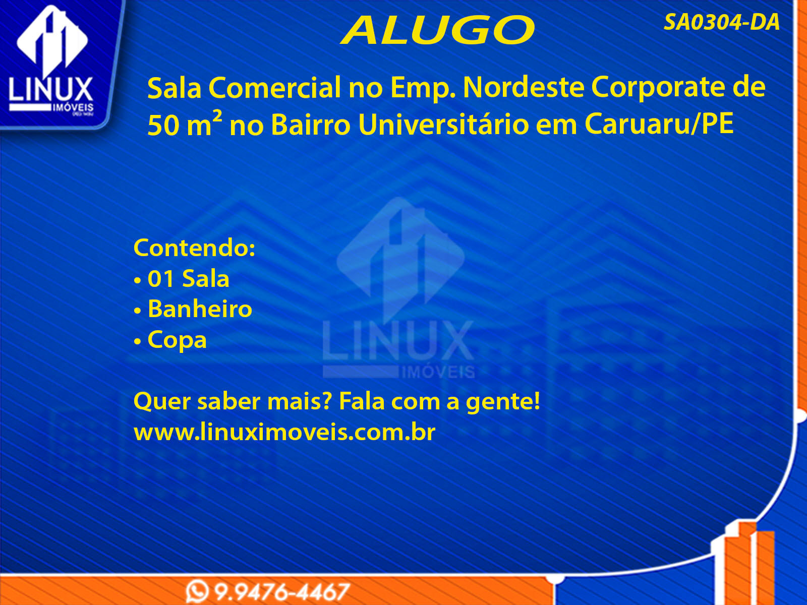R$3.000,00 / ALUGUELSala Comercial no Emp. Nordeste Corporate em Caruaru/PE p/ Locação (SA0304-DA)